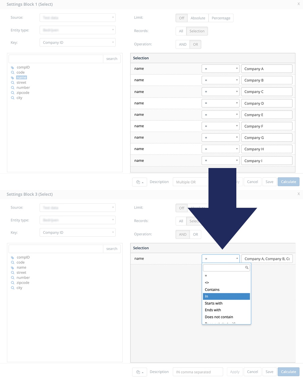 Voorbeeld – OR-voorwaarden vervangen door IN